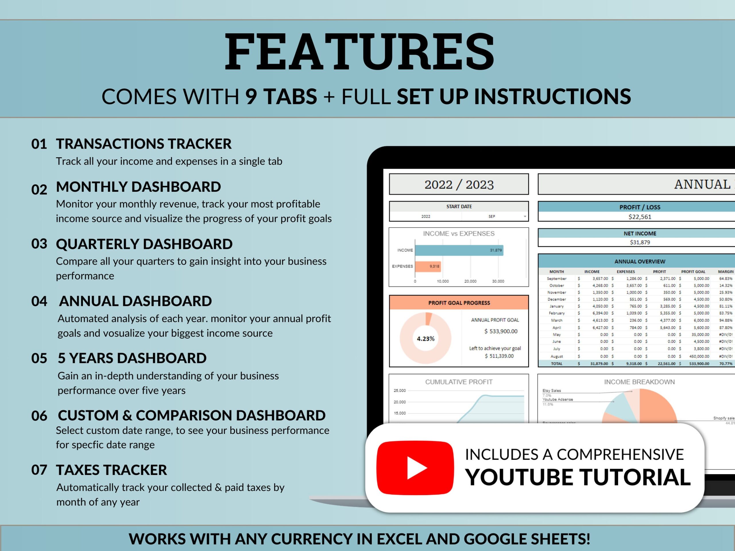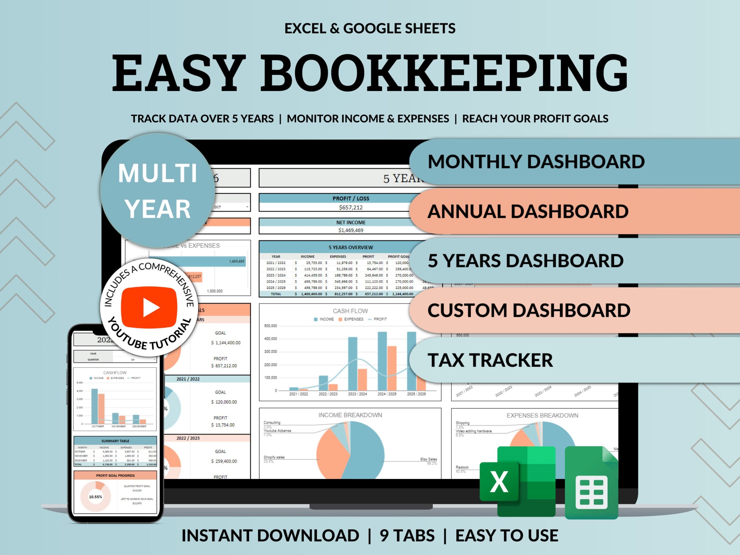 • This spreadsheet is for informational use only. TiroTax cannot give any financial, tax or legal advice. Please do your own research and if needed contact a licensed financial advisor before making any financial decisions. Under no circumstances can or will TiroTax be held responsible for any costs, loss, damage or injuries (may it be direct or including without limitation indirect loss or damage) that result from the use of this spreadsheet.💸 That is it! Enjoy your Small Business Bookkeeping Spreadsheet and happy bookkeeping!Join our thriving community on social media, where we share tips, behind the scene, exclusive promo code and captivating content to streamline your life and elevate your productivity.In-depth YouTube Tutorial on how to efficiently use our spreadsheets:[Small Business Bookkeeping Spreadsheet Accounting Template Business Expense Bill Tracker Income Sales Profit Tracker Google Sheets Excel ]