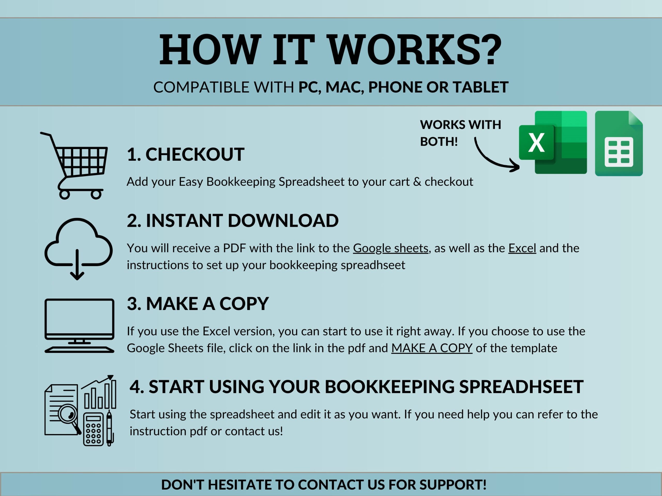 ✓ PDF with the link to the Easy Bookkeeping Spreadsheet for Google Sheets